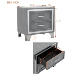 Mid Century Nightstand With 2 Drawers, Velvet Bedside Table With Metal Legs-ModernLuxe