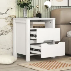 Nightstand With USB Charging Ports And LED Lights, End Table With 2 Drawers And Shelf-ModernLuxe