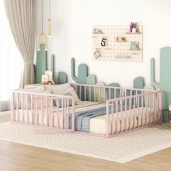 Queen Size Upholstered Platform Bed With Twin Size Trundle Bed And Two Drawers-ModernLuxe