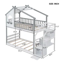 House Shape Twin-Over-Twin Double Bunk Bed With Storage Stairs – ModernLuxe
