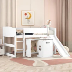 Low Twin Loft Bed With Cabinet And Rolling Portable Desk – ModernLuxe