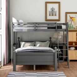 Twin Over Full Bunk Bed With Twin Size Loft Bed With Desk, Slide And Full Length Rail – ModernLuxe