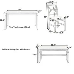 6 PCS Classic Dining Table Set With 4 Upholstered Chairs & Bench-ModernLuxe