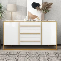 Contemporary 59″ Sideboard With Large Storage And Gold Metal Legs – ModernLuxe