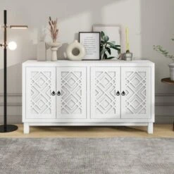 60″ Large Storage Space Sideboard With Artificial Rattan Door And Metal Handles – ModernLuxe