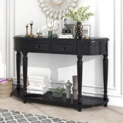 Retro 60″ Sideboard With Circular Groove Design And Round Metal Handle-ModernLuxe