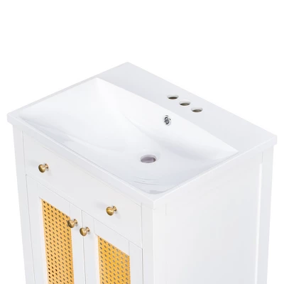 - 【Large Storage Space】Organize your bathroom and keep visual space clean with the under-sink storage of this bathroom vanity. Two side-by-side open doors of the sink vanity offer an extra big space for storage and make the bathroom clean and tidy.