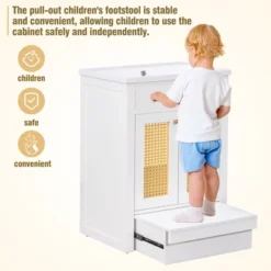 - 【Practical and Functional Design】The pull-out children’s footstool is stable and convenient, allowing children to use the cabinet safely and independently.