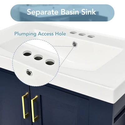 - 【Three Hole Basin】This bathroom vanity is equipped with a three hole basin with a diameter of 32mm. Suitable for taps with a diameter not exceeding 32mm.