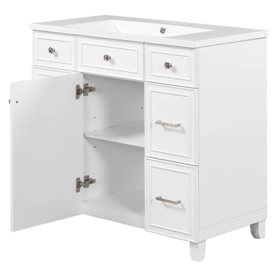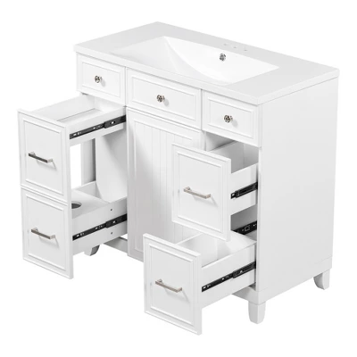 Functionality meets timeless elegance with this sophisticated and versatile white bathroom vanity. With its generous storage capacity, you can easily organize all your bathroom essentials, keeping your space clutter-free. Experience the perfect blend of classic style and modern functionality with our white bathroom vanity. Upgrade your space and enjoy the convenience and beauty it brings to your everyday life.