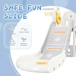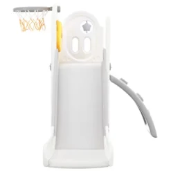 Refreshing shape design! Sophisticated and adorable toddler freestanding climber and slide set with four functional parts: 1 slide, 1 climbing ramp, 1 basketball hoop and 1 hidden toy storage. This set will let kids’ playful natures go wild, and they’ll have hours of fun with their friends!