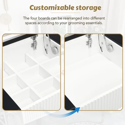43.3″ Modern Vanity Table Set With Flip-Up Mirror, LED Lights And Storage – ModernLuxe