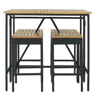 Material: PE Wicker+Steel Frame+Acacia Wood.