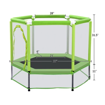 Trampoline Product Dimensions: 55″ x 42″ (D x H).