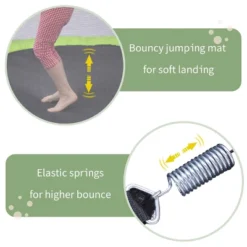- [Excellent Bounce] High-quality polypropylene jumping mat and heavy-duty 42 springs provide great power and bounce when jumping. The bright orange/green/blue color scheme makes the trampoline look more sporty and dynamic.