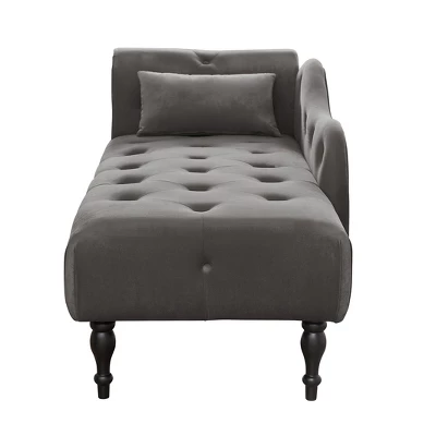 Featuring soft velvet upholstery, tufted buttons, nailhead accents, solid wood legs, and throw pillows, this lounge chair brings an elegant, classic feel to your room. Whether you’re reading a book, taking a nap, or just thinking, it will be your favorite place to relax.