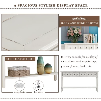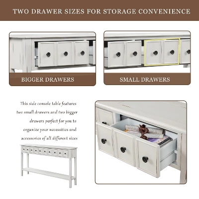 60″L Rustic Console Table With Two Different Size Drawers And Bottom Shelf-ModernLuxe