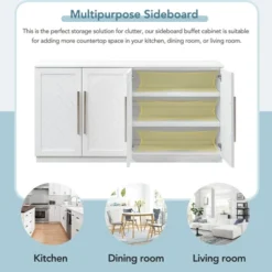 - [Two Colors] Our sideboards are available in two different colors for users, the retro and elegant blue and white. The white cabinet with silver handles naturally exudes a sense of luxury and looks bright and clean. The navy blue color with silver accessories is gorgeous and high-end, which can bring a retro and romantic feeling to the home.