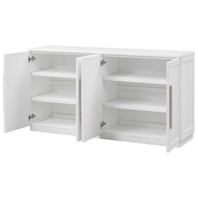This is the perfect storage solution for clutter, it will keep your living room and kitchen neat and organized. This cabinet has four doors and adjustable shelves for better storage. The simple lines and the unique stripe design of the cabinet combine beauty and practicality, and conform to the aesthetic standards of all ages. Our sideboards are perfect for adding more countertop space to your kitchen, dining room or living room.