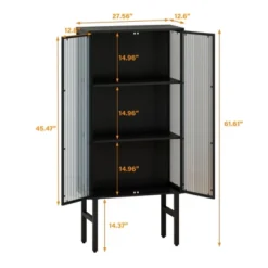 - 【Excellent Quality】Using iron + tempered glass, combined with meticulous craftsmanship, it is stable and durable. Sturdy construction provides exceptional strength and stability. Easily resists rust, erosion and wear. Designed with fluted glass, this storage cabinet is light-transmitting but Not see-through, giving it a modern aesthetic and the best choice for high-end home decoration.