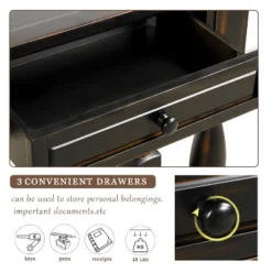 Designed in an extra-long, extra-thick Mediterranean style, this console adds a subtle elegance to your space and provides space to accent and display your belongings. Whether you need a light source, a convenient place to display nick-knacks, or you require extra storage with a small footprint, this console table is the perfect match. Include 3 convenient drawers for storing important items such as keys, pens, receipts, etc.