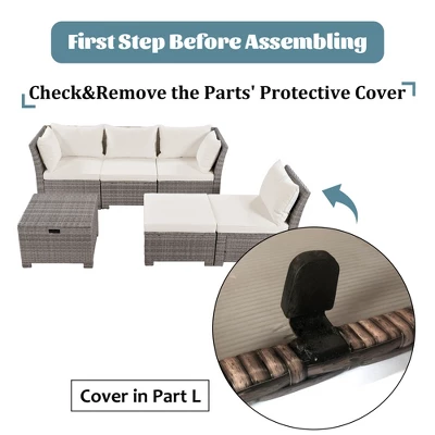 Pieces Included: 2*Corner Chair+2*Single Chair+1*Ottoman+1*Table+5*Seat Cushion+6*Pillow.