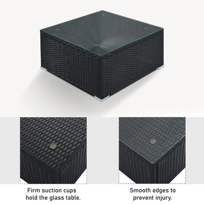 - [Simple Cleaning] The tempered glass is connected to the wicker table top through suction cups, which is very safe and stable. They only need a rag to keep them clean and tidy. While those pillows are equipped with zippers and only need a simple cleaning.