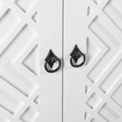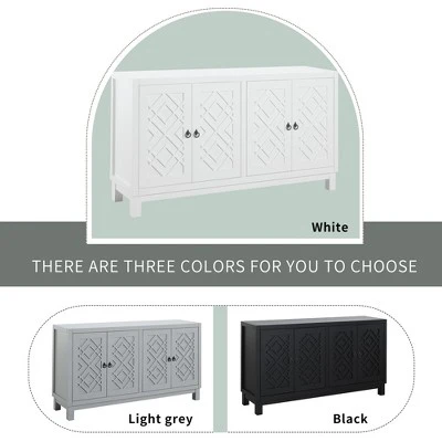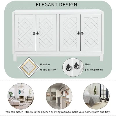 - [Classic Design] The door of this sideboard is designed with a rhombus hollow pattern and a metal pull-ring handle, which presents a simple and atmospheric style.