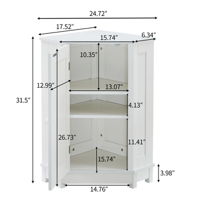 - [Space Saving] The compact cabinet fits into tight spaces and adds the perfect storage space to bathrooms of all sizes. Hide toiletries and other bathroom items behind cabinet doors for a fresh, clean look. The classic white design adds character that blends in with all bathroom styles.