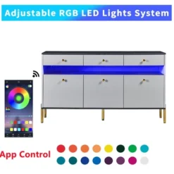 - 【Smart LED Light】This vanity comes with an eye-catching smart LED light. Multifunctional LED strip light (more than 60000 colors to choose from), phone app control. You can freely set the brightness, color, mode and timing function, and design the light show according to your preferences.