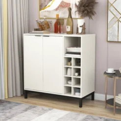 - [Multifunctional] You can place a large number of kitchen supplies or some drinks in the left storage cabinet. The wine rack on the right can be disassembled, partially or completely. The laminate in the middle of the wine rack on the right can be adjusted to meet your various storage needs