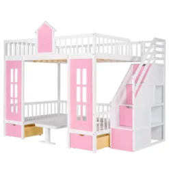 - 【Playhouse Inspired】We offers three different color schemes. You can choose the most suitable color to match your bedroom design. With classic design bunk bed creates a fun and adorable space that not only serves as a comfortable sleeping area but also double as a space for you to play and have fun.