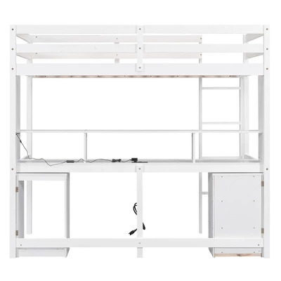 This versatile loft bed can meet your every need. Storage shelves, 1 cabinet, 3 drawers and 1 bedside tray provide ample storage space. The built-in desk comes with 2 standard plug sockets and 2 USB ports for your entertainment or study convenience. This loft bed comes with LED lights, perfect for your colorful nightlife. This bed is the perfect finishing touch to your bedroom.