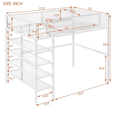 Metal Twin Size Loft Bed With 4 Shelves And Storage – ModernLuxe