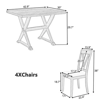 Dining Table: 42.9″ W x 30″ D x 29.7″ H.