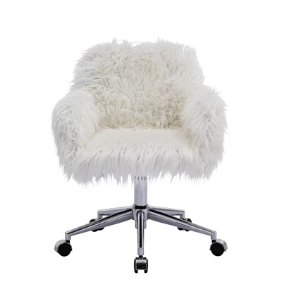 - [Comfortable Seating Experience] Long soft Synthetic fake fur with a skin-friendly touch will offer you extra comfort. The seat height can be easily adjusted to meet your ideal position. And you will sit comfortably and feel relaxed thanks to the wide backrest, cozy armrests, and thick sponge-padded seat.