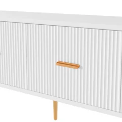 This modern TV Stand has been designed with both style and practicality in mind. Made of high-quality materials and featuring a contemporary design and 5 champagne legs, this durable TV Stand offers plenty of room and storage for your television equipment, media, and other accessories. It is easy to install, and perfect for any living room or entertainment center. Add a modern and fresh touch to your home with the stylishly designed TV Stand!