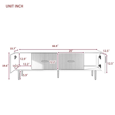 TV Stand: 19.69” H x 15.75” W x 67” D.