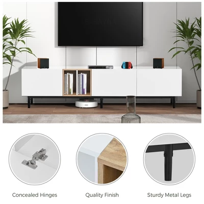 - [ Drop-Down Doors Design ] The TV stand is equipped with drop-down doors. Compared with traditional TV cabinets, you can access your favorite items more easily.