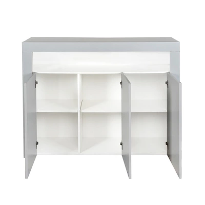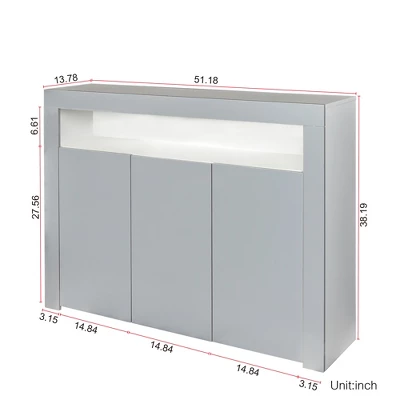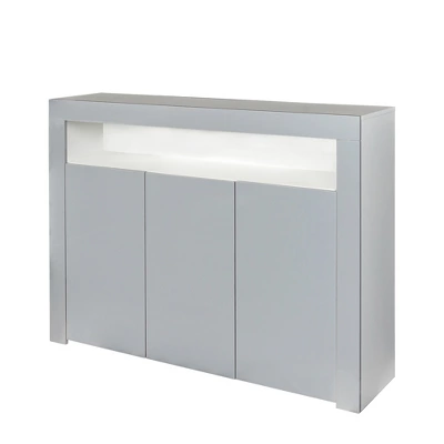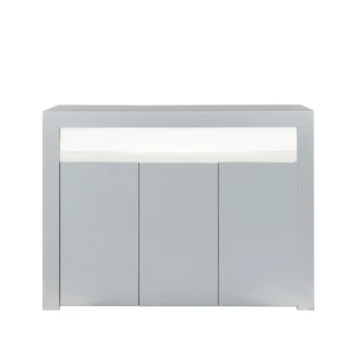 Wooden sideboard with LED light, simple and stylish, it will be a highlight of your room. This practical 3 door sideboard storage unit with open cubicle space and hidden shelves is designed to store household items, space efficient and dustproof.