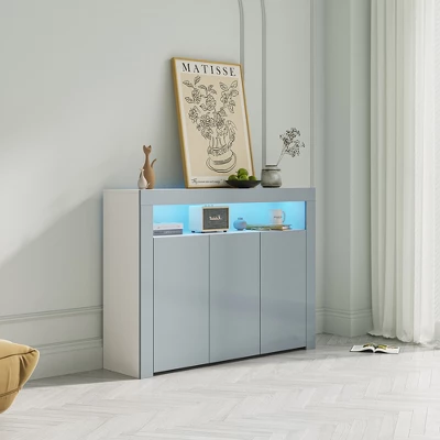 - 【Modern and Stylish】This wooden sideboard is made of 16mm E1 particleboard, the front of the LED unit cabinet body (including the door and front panel) is finished with a high-gloss effect, and the rest of the body is finished with a matte finish, modern and stylish , in line with your aesthetic and taste.