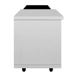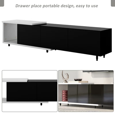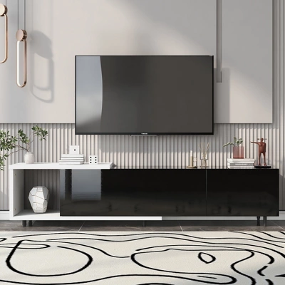 This TV stand brings elegance and modernity to your living room. Particle board with a clean-lined silhouette in black & white lacquered hue fits into your existing arrangement easily. Designed with a smooth and wear-resistant tabletop, this functional TV stand provides plenty of space for the TV screen and decorative accents, while it features 3 large drawers for internal storage, offering extra and flexible storage space. Stylish, functional, and high-quality, this TV stand is a wise choice for your home furnishings needs.