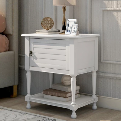 This nightstand will keep your bedroom or guest room organized and clutter free. This nightstand features two built-in shelves to provide space for important items. Neutral finishes help this design blend with any color palette you dream up. Plus, you can add a small light or framed photos on top of its spacious surface.