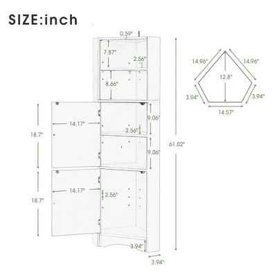 - [Intimate Design] The bathroom cabinet is designed as a triangle, which can stand in the corner and save space. Metal round door handles and magnet door buttons allow users to feel comfortable opening and closing the door.