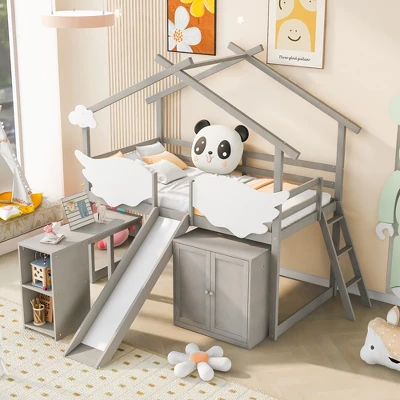 - 【Wardrobe and Slide Rail Design】The wardrobe under the bed can be used to store children’s clothes. A slide adds interest to the entire bed.