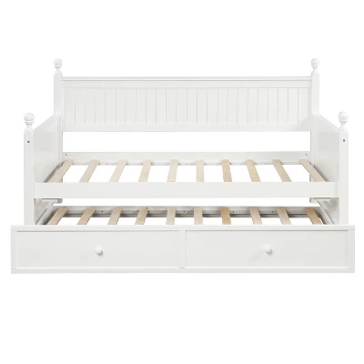 - 【Stable and classic bed frame】Solid Pine with square posts make the daybed extremely sturdy and rugged. Pine wood frame adds sturdiness and durableness. The strong legs and wide boards can not only improve the weight capacity but also increase its stability.