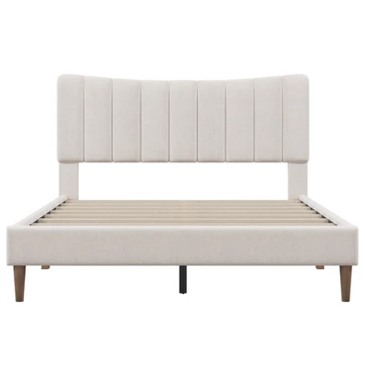 - [Modern Design] The linen-inspired fabric finish with channel tufting on the headboard provides a timeless look. Plush padding in the tufted headboard makes this upholstered bed your new go-to spot to sit back and relax.