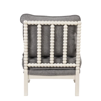 Set up a cozy spot in your home with ModernLuxe spindle chair! The arms, legs, and back of our Accent Chair have a beautifully turned beaded design that gleams in the finish. The contrasting fabric of the removable pillow back with the plush oversized seat and back along with the padded arms make it a terrific reading chair. The handsome dark wood/white finish, cool, neutral fabric hues, and piping detail add to the elegance of this solid chair.